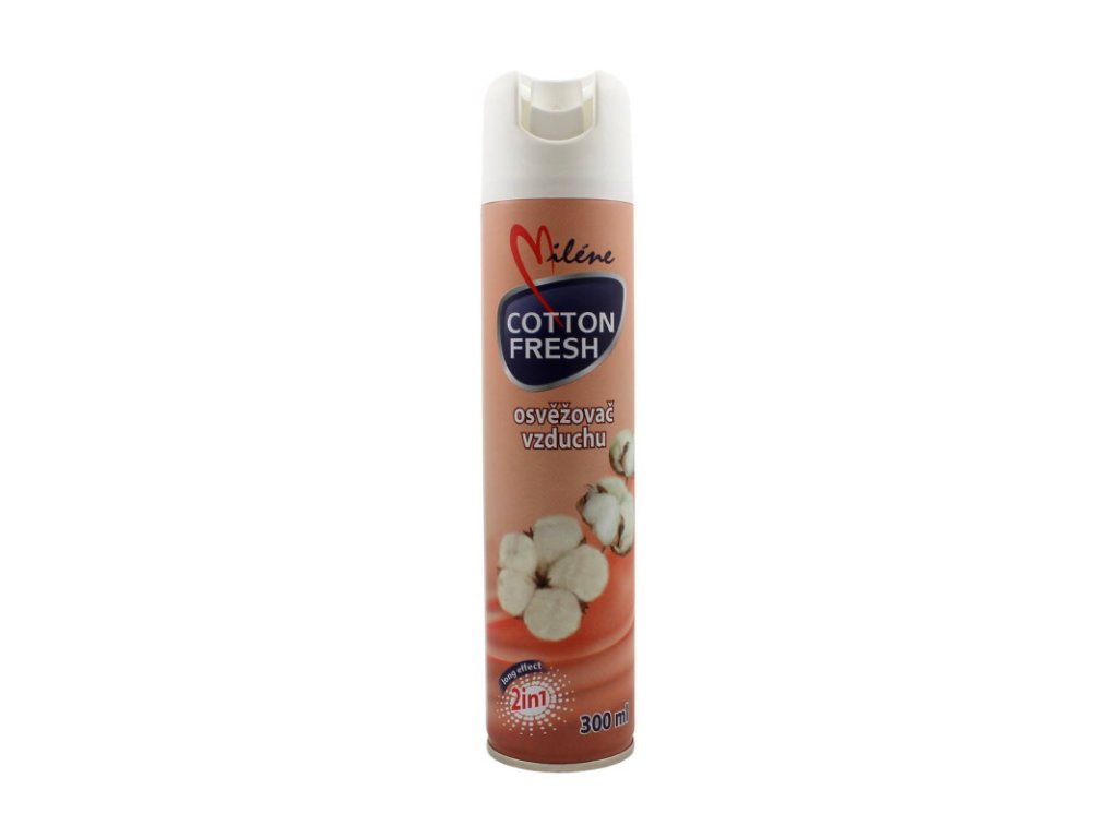 Osviežovač vzduchu Miléne 2 v 1 COTTON 300 ml. Osviežovač vzduchu Miléne bavlna pohlcuje nežiaduce pachy a príjemne prevonia váš domov i pracovisko príjemnou dlhotrvajúcou sviežou vôňou bavlneného kvetu. Sprej s objemom 300 mlBuďte prvý, kto napíše príspevok k tejto položke.