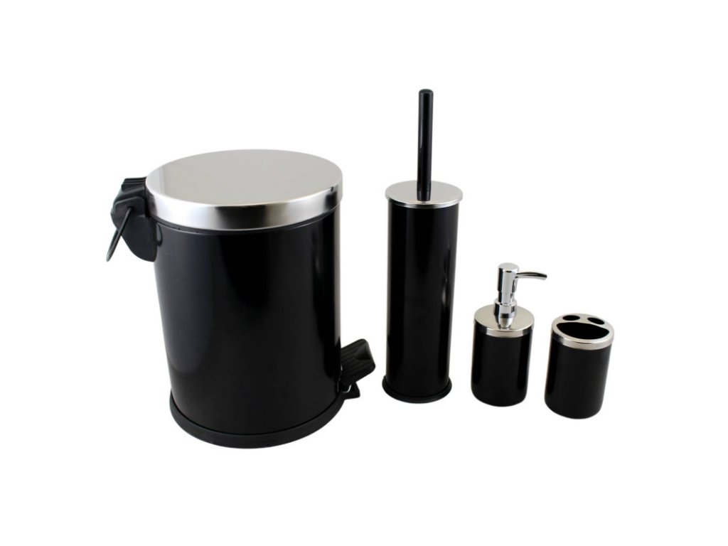 Kúpeľňová sada 4-dielna čierna Dodajte svojej kúpeľni nový rozmer elegancie s našou kompletnou kúpeľňovou súpravou, ktorá pozostáva zo štyroch základných kusov. Táto súprava, navrhnutá s ohľadom na funkčnosť a štýl, vám nielen uľahčí každodenné úlohy, ale aj skrášli vašu kúpeľňu. Kúpeľňová sada je z nehrdzavejúcej ocele s povrchovou úpravou. Súprava obsahuje: Držiak na zubné kefky - dokonalé riešenie na hygienické uloženie zubných kefiek a udržiavanie čistoty v miestnosti. Dávkovač mydla - praktický a estetický spôsob uskladnenia tekutého mydla, ktoré sa ľahko a čisto dávkuje. Toaletná kefa - základný predmet na toaletu alebo kúpeľne, ktorý nielenže plní svoj účel, ale aj vyzerá štýlovo a elegantne. Kôš na odpadkový papier 5l - diskrétny, ale funkčný, pre čistú a upratanú kúpeľňu. Každá položka v tejto súprave bola starostlivo navrhnutá tak, aby vyhovovala rôznym štýlom kúpeľne. Vysokokvalitné materiály zaručujú odolnosť a jednoduchú údržbu. Vneste do svojej kúpeľne harmóniu a spojte funkčnosť a estetiku s touto kompletnou súpravou, ktorá uspokojí vaše každodenné potreby a ešte viac vylepší vašu kúpeľňu.Buďte prvý, kto napíše príspevok k tejto položke.